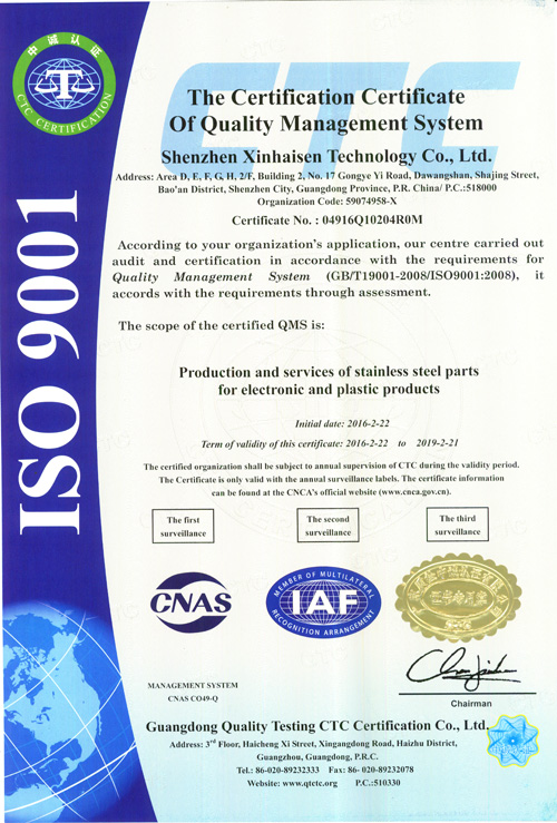 深圳市鑫海森科技有限公司成立于2006年,坐落于中國廣東省深圳市沙井鎮(zhèn),地理位置優(yōu)越,對于我司原物料采購及協(xié)作加工有無法比擬的迅速性和高品質(zhì)性。 我司主要進行精密五金件的加工,產(chǎn)品涉及的范圍相當(dāng)廣泛,涵蓋了通訊、聲學(xué)、光學(xué)、醫(yī)療、安防、機械、航空、陸運工具、家電等等領(lǐng)域。本公司目前產(chǎn)能1000^2全自動生產(chǎn)線6條。加工厚度從0.02mm-1.5mm產(chǎn)品的精度可以做到... 【查看詳情】